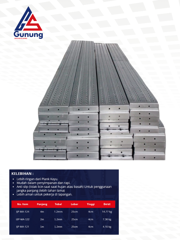 Menggunakan bahan berkualitas tinggi yang kokoh, tahan lama, dan mampu mendukung berbagai kebutuhan konstruksi skala kecil hingga besar.