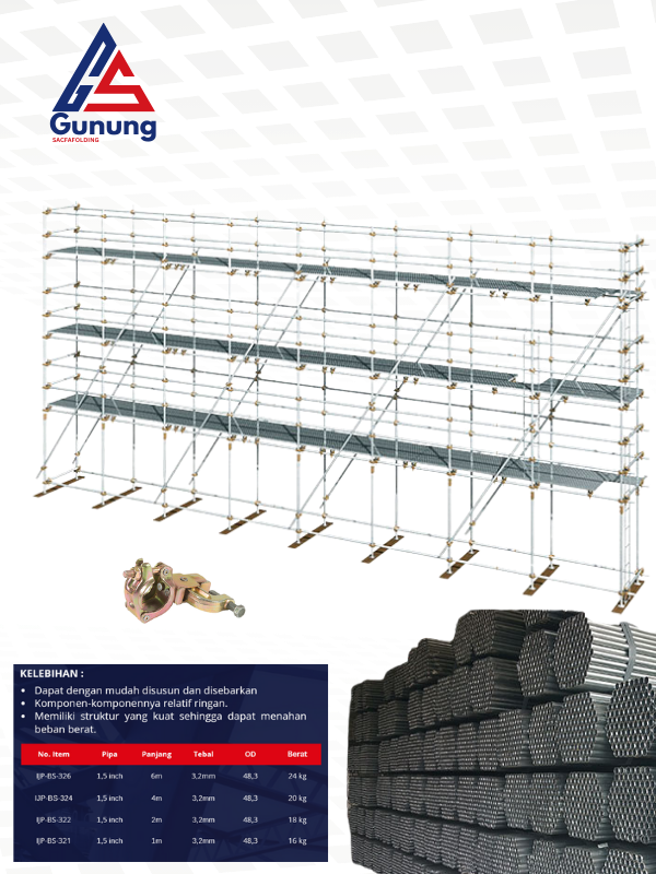 Gunung Scaffolding, solusi scaffolding aman dan berkualitas dengan harga kompetitif, layanan cepat, serta tim profesional yang siap mendukung kesuksesan proyek konstruksi Anda.